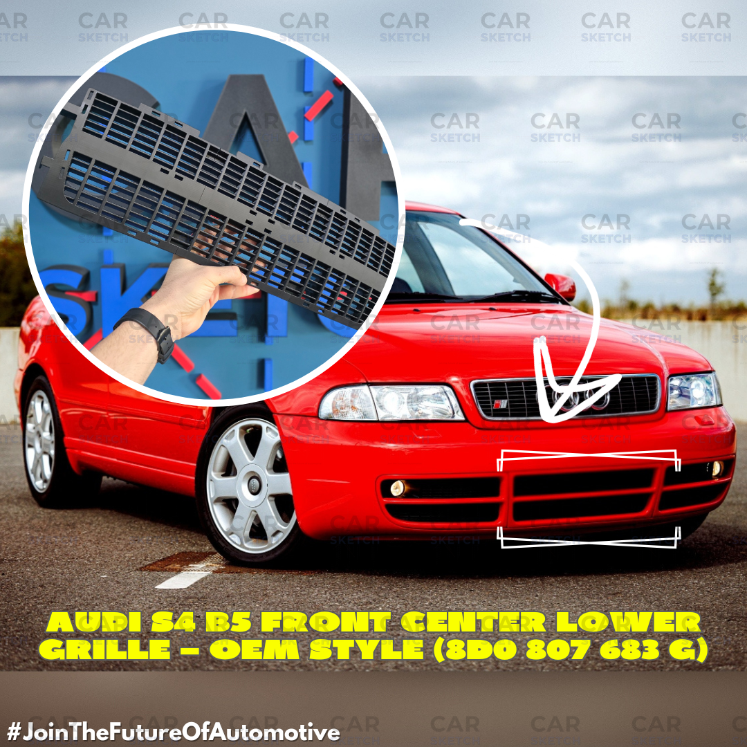 Restore or replace the factory front-end look of your Audi S4 B5 with this front center lower grille, manufactured as an exact replica of the original OEM grille with reference number 8D0 807 683 G.