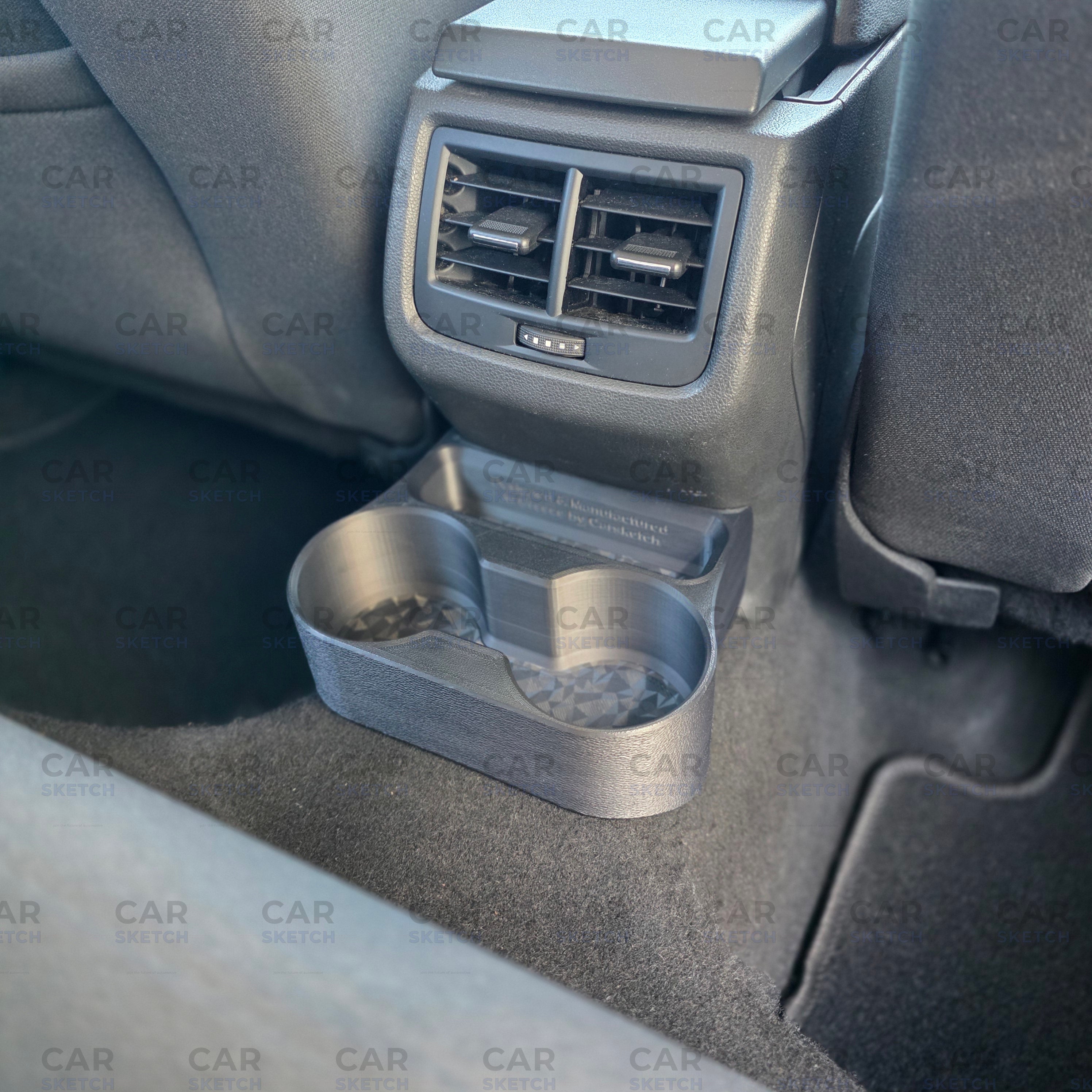Position the cup holder in the desired spot for rear passengers.